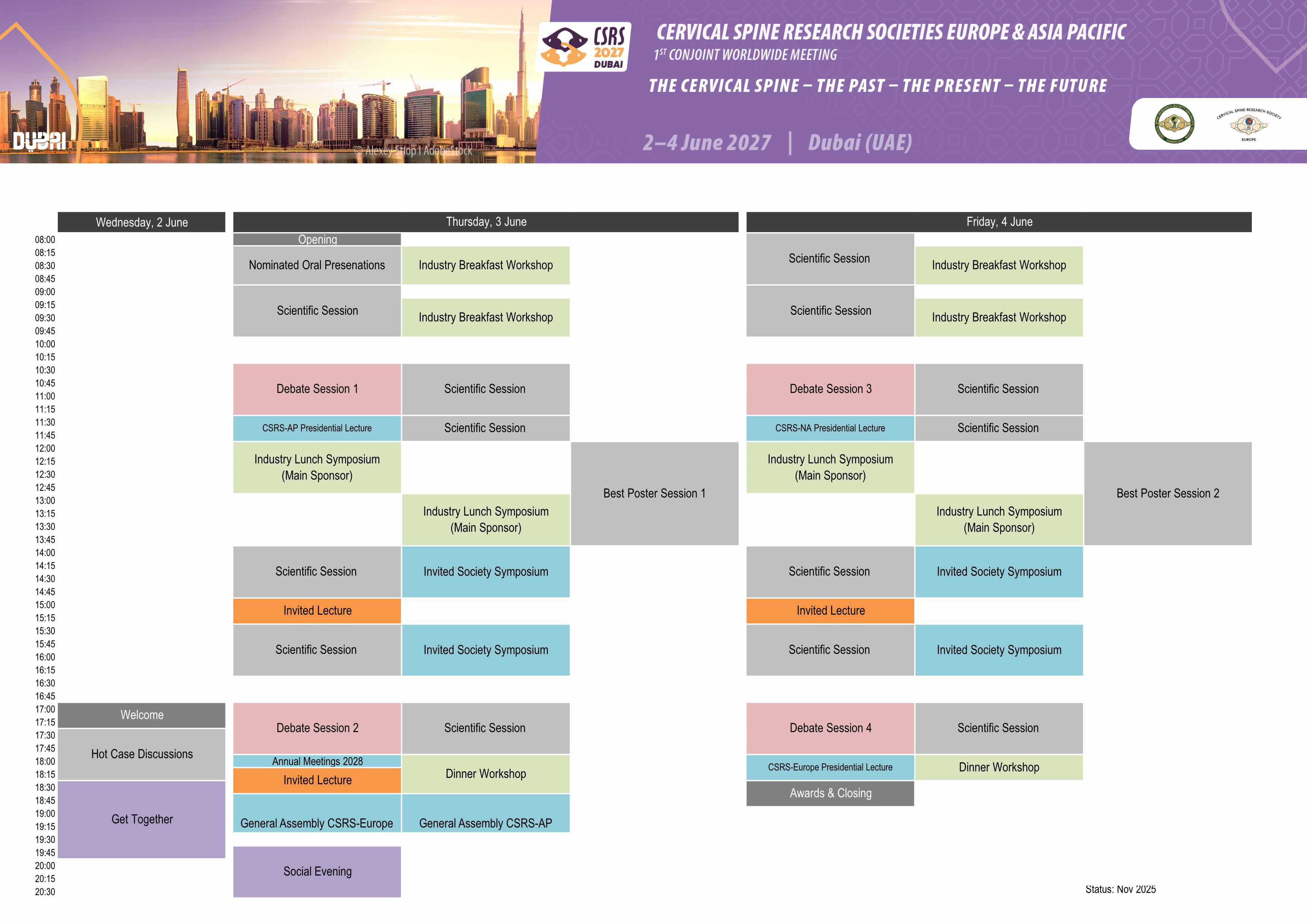 Thank you for your interest in the 1st CSRS worldwide meeting from 2 – 4 June 2027 in Dubai! A programme overview is already available. More details will be available in summer 2026. Thank you for your patience.